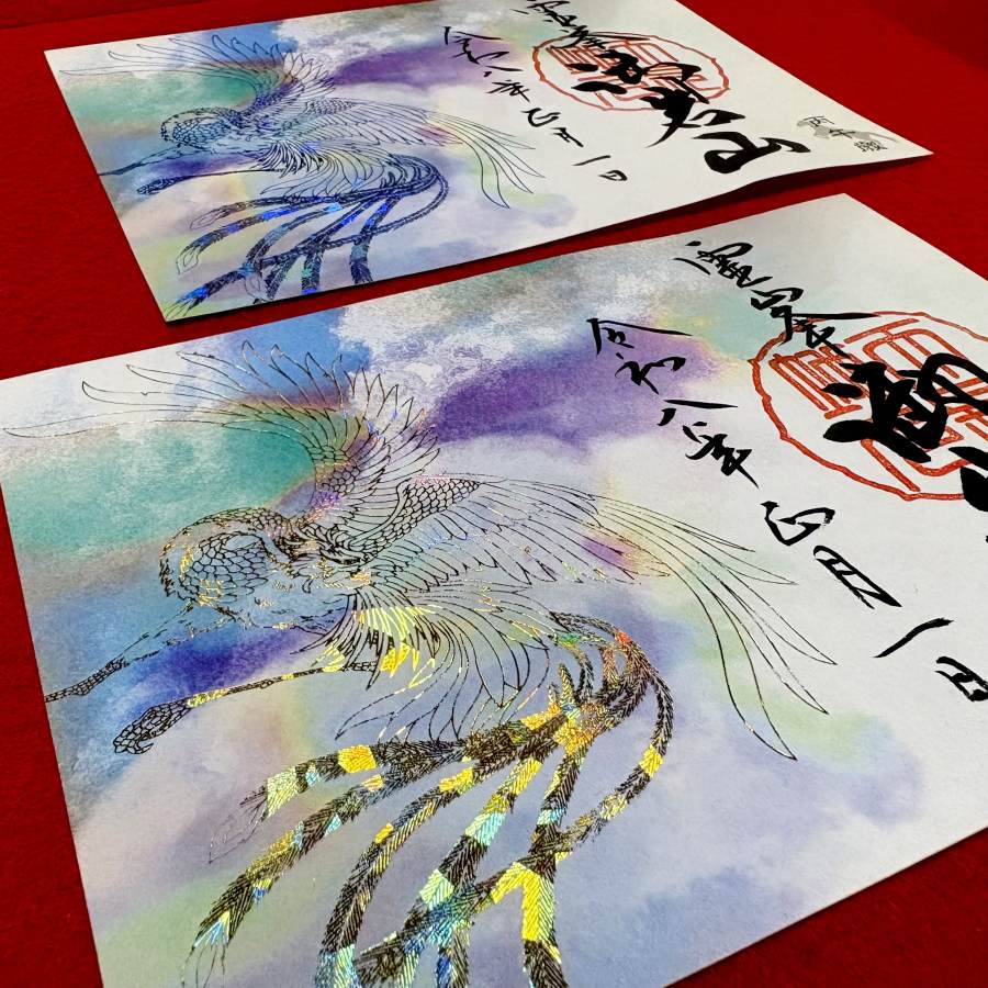 尚、「鳳凰」の箔押しの色が2種類ございまして、1月1日よりお頒かちする金箔の御朱印が無くなり次第、青箔の頒布を始めます。